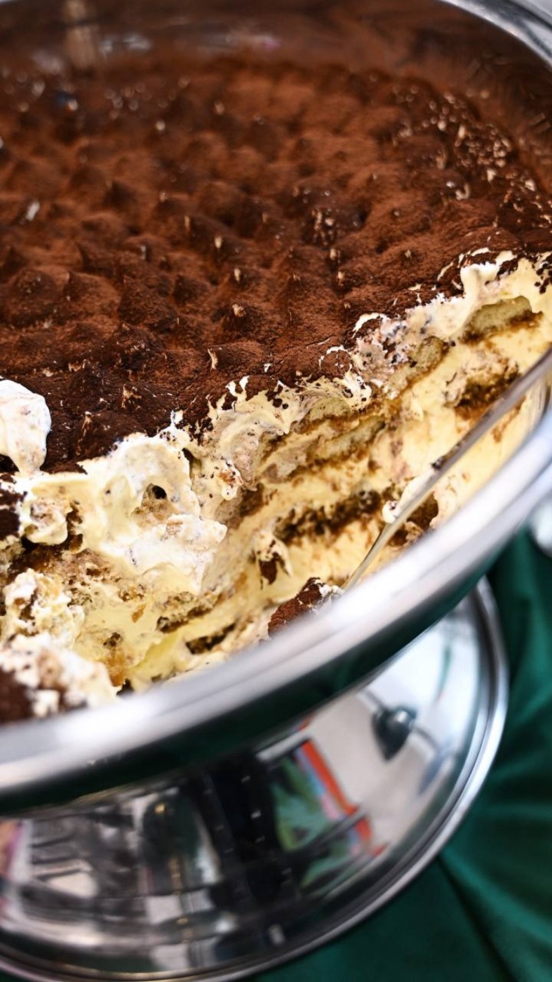 Це унікальний десерт, з авторською інтерпретацією нашого Шеф-Кондитера, що створює атмосферу справжньої Італії посеред зими. Подаємо Тирамісу в великій чаші та використовуємо порційні металеві креманки, що стали трендом цього року.