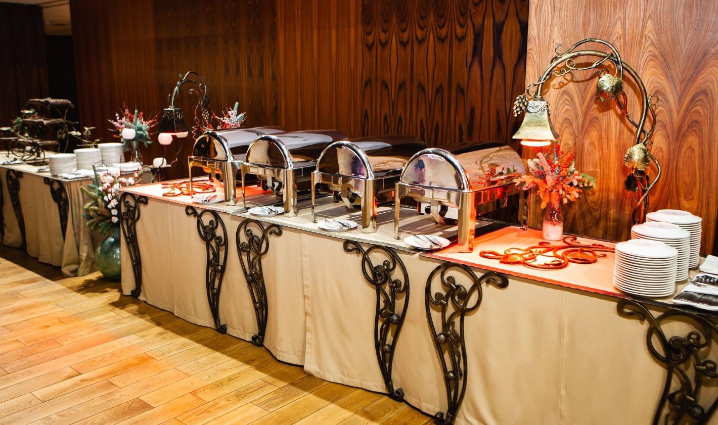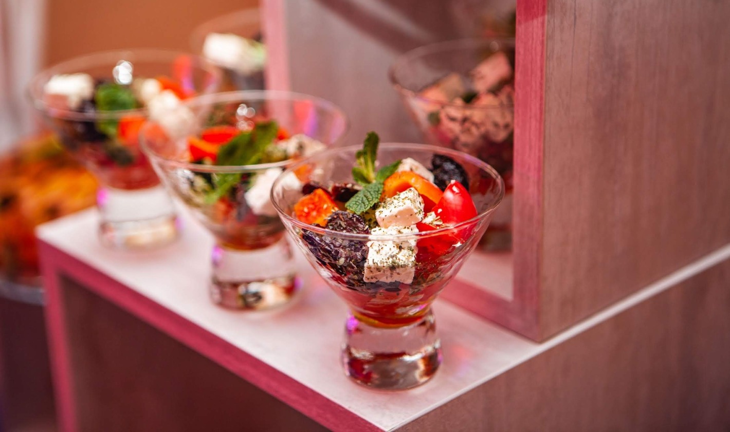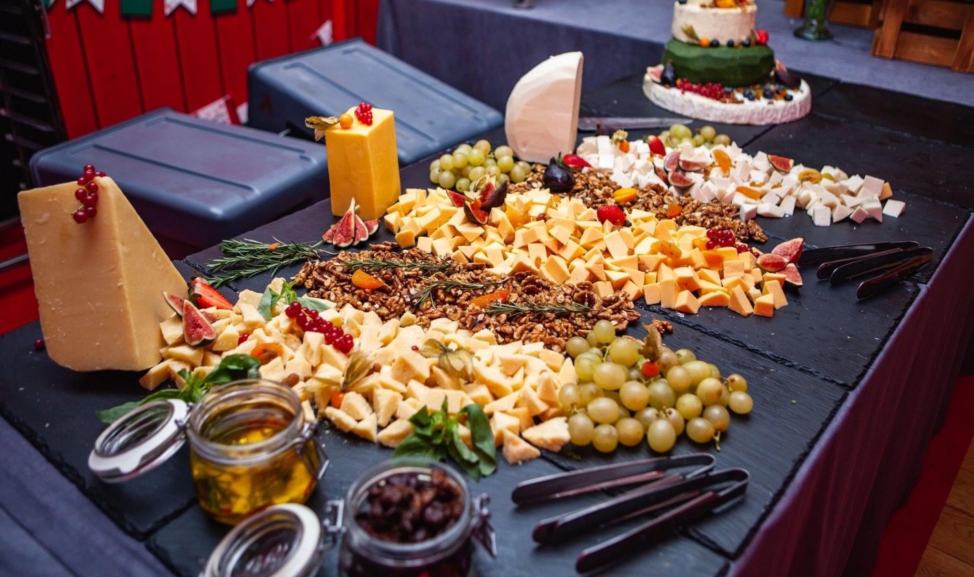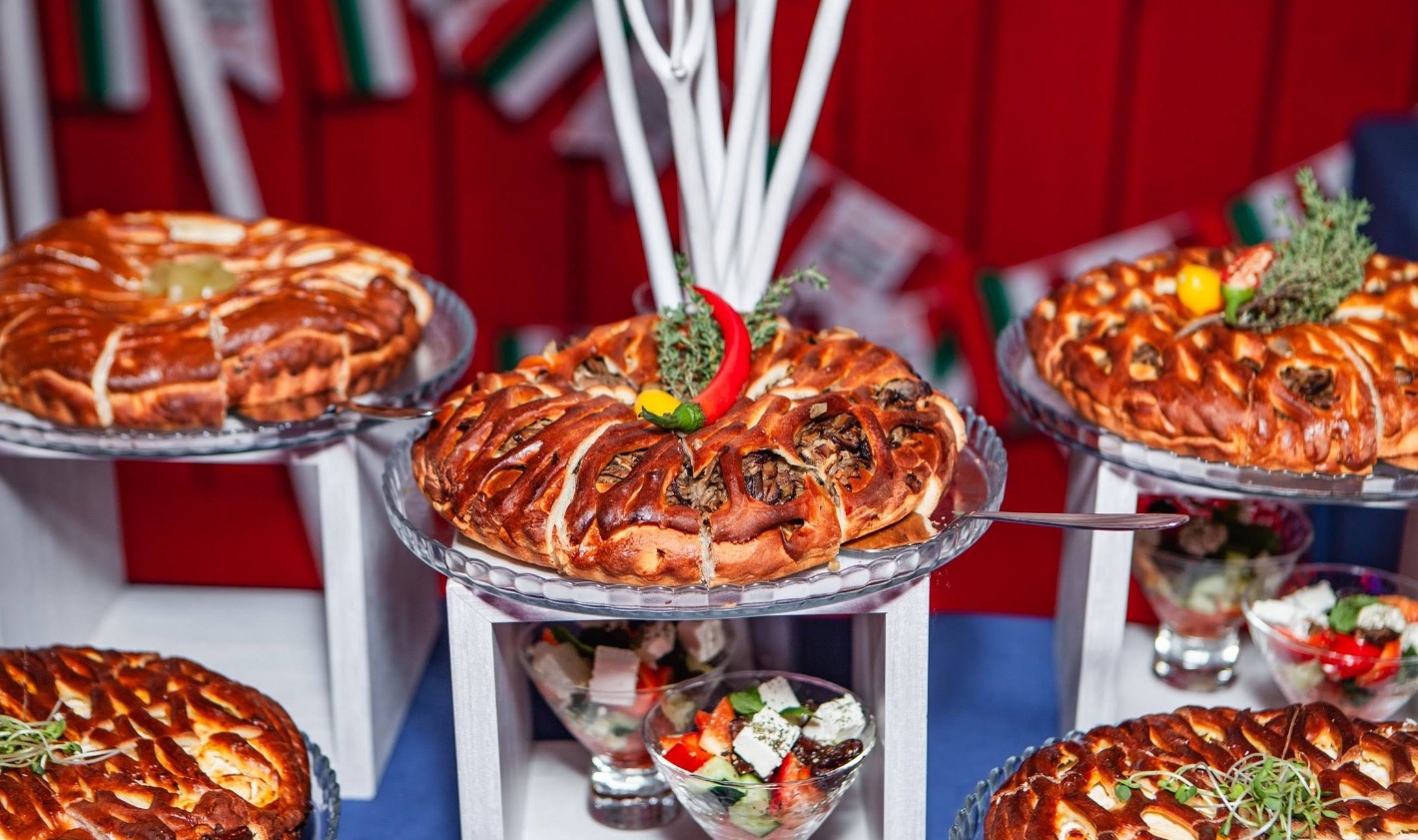 Зона основного фуршета была представлена мини-домиками с прилавками национальных угощений 5-ти стран: Украины, Америки, Англии, Италии, Болгарии.