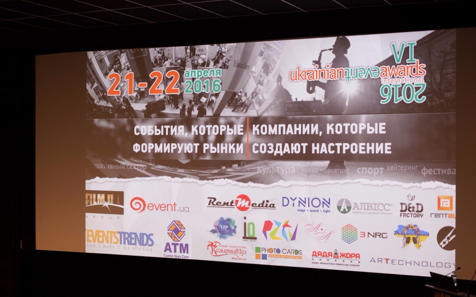 21-22 апреля 2016 года в Киеве в крупнейшем в Восточной Европе студийном комплексе FILM.UA состоялось «Событие событий» – Шестая независимая Премия в сфере организации мероприятий Ukrainian Event Awards. Спонсором Премии выступила техническая компания АТМ Украина. Главными триумфаторами стали владелец кейтеринговой компании «Фигаро кейтеринг» Александр Котолуп, признанный «Менеджером года», и команда Nebo events agency с ГРАН-ПРИ за проект THE ART для Philip Morris Ukraine. Основным и ключевым новшеством года стал переход на новую систему критериев оценки конкурсных работ, а также введение номинации Новатор года, задача которой выделить представителей индустрии, которые вносят особый вклад в ее развитие. На Премию было подано 82 проекта в Украине и Республики Беларусь. Детальнее: http://eventawards.com.ua/winners-ukrainian-event-awards/
