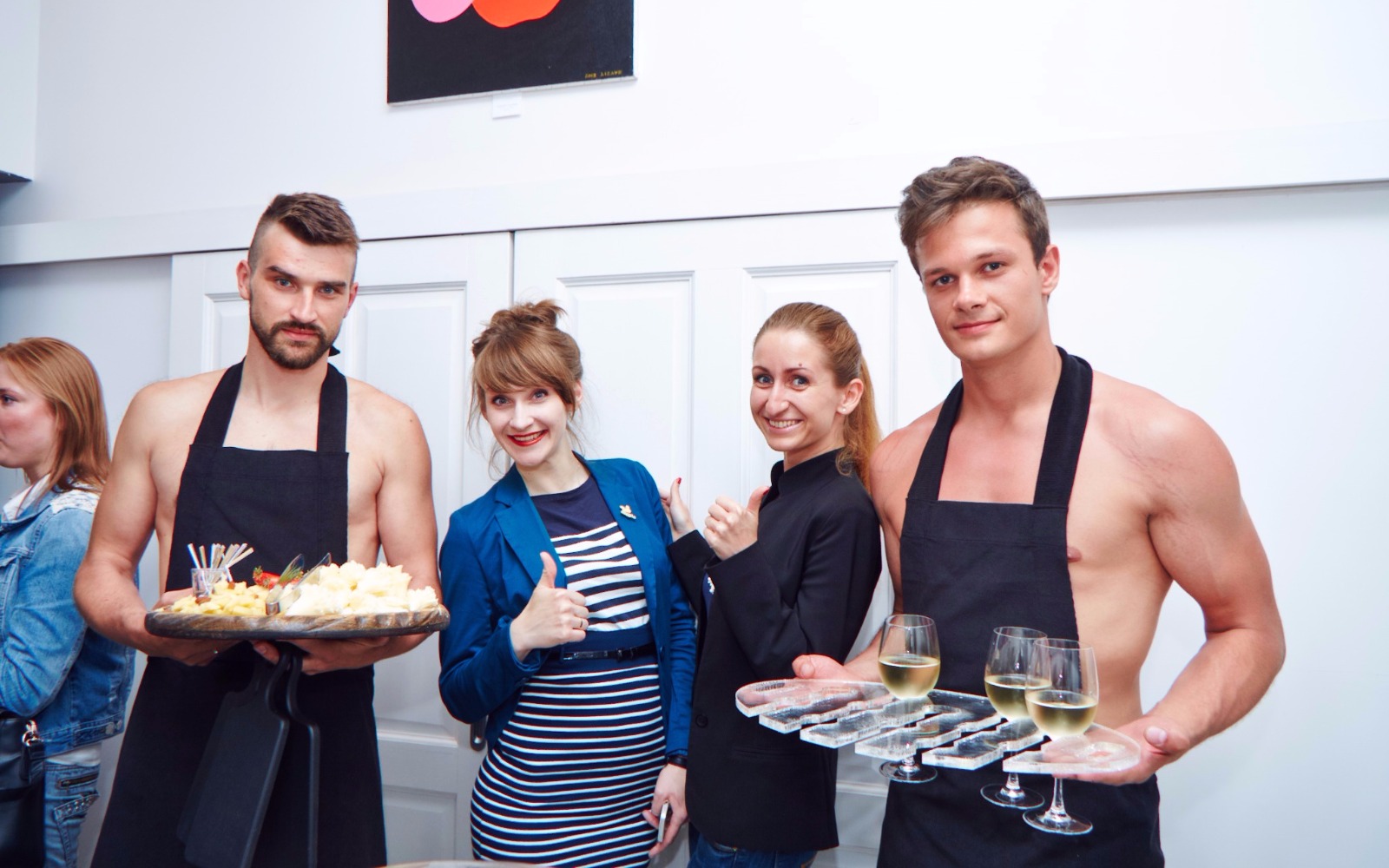 Вечер начался с приветственного коктейля под DJ set от AQUABEAT. После чего идейный вдохновитель ФИГАРО-Кейтеринг, Александр Котолуп и основатель арт-пространства СЮЗАНН, Катерина Котолуп представили гостям новую выставку «ЇЇ» молодой художницы LIZAVE.