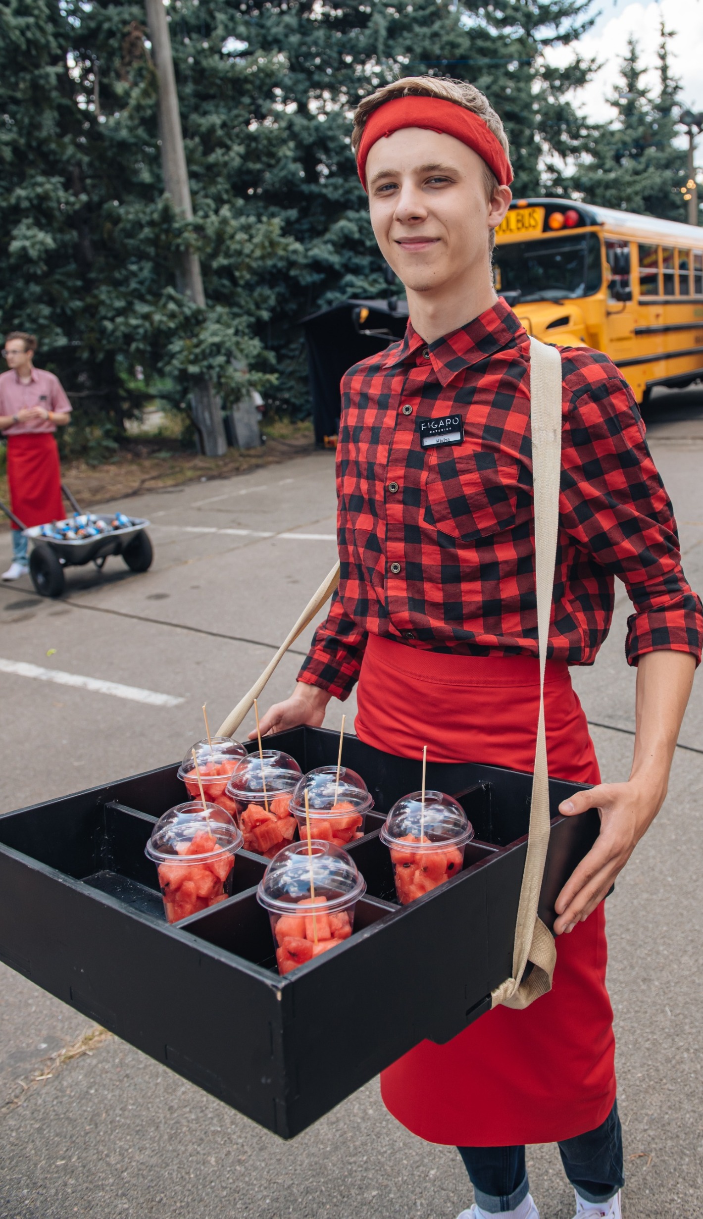 Персонал одет в лаконичные поло и кепки.