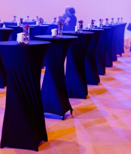 Такой формат предполагает минимальное количество коктейльных столов и исключает приборы. Очень удобен для мероприятий с большим количеством гостей: презентации, показы коллекций, церемонии награждения