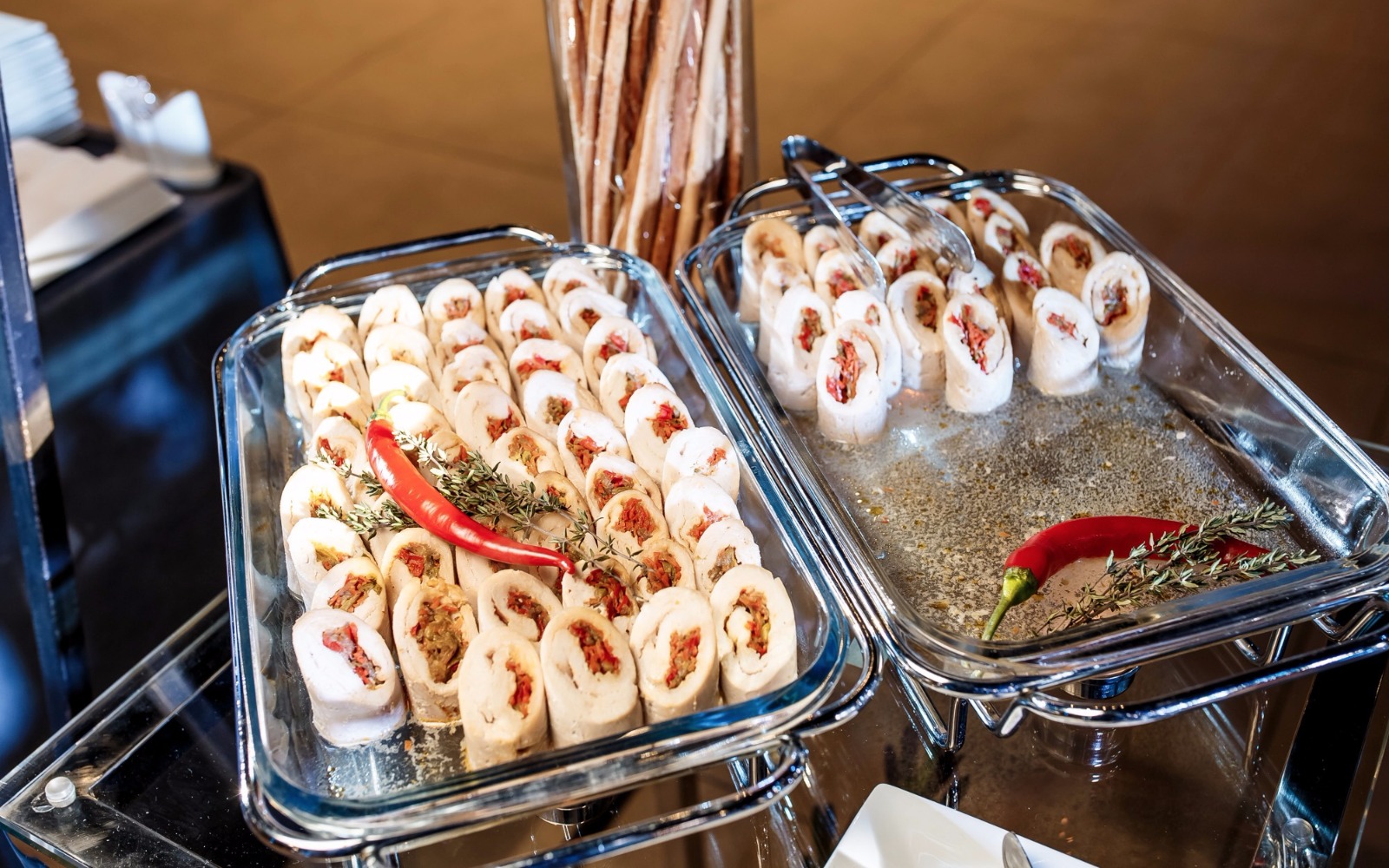 Шведский стол – обычно наполнен большим ассортиментом блюд для полноценного обеда: расширенный ассортимент салатов, горячих блюд и закусок
