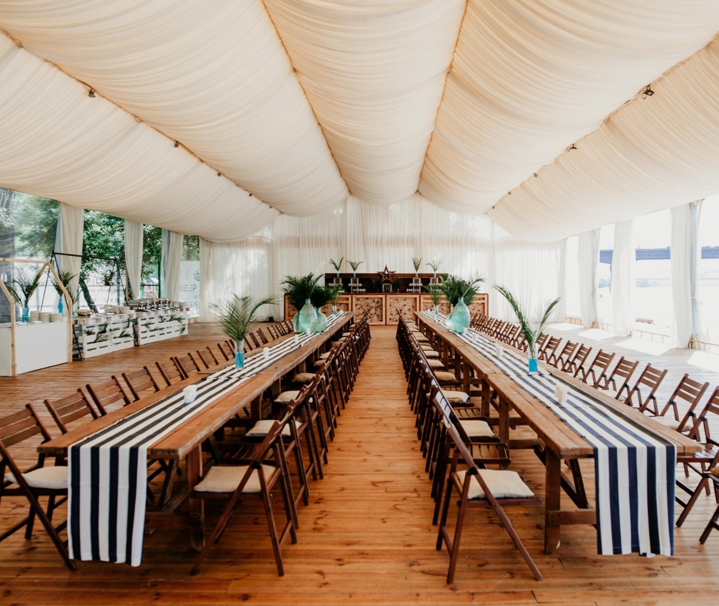 Рассадка гостей в Lounge зоне с накрытием P.R.A.D.A. picnic