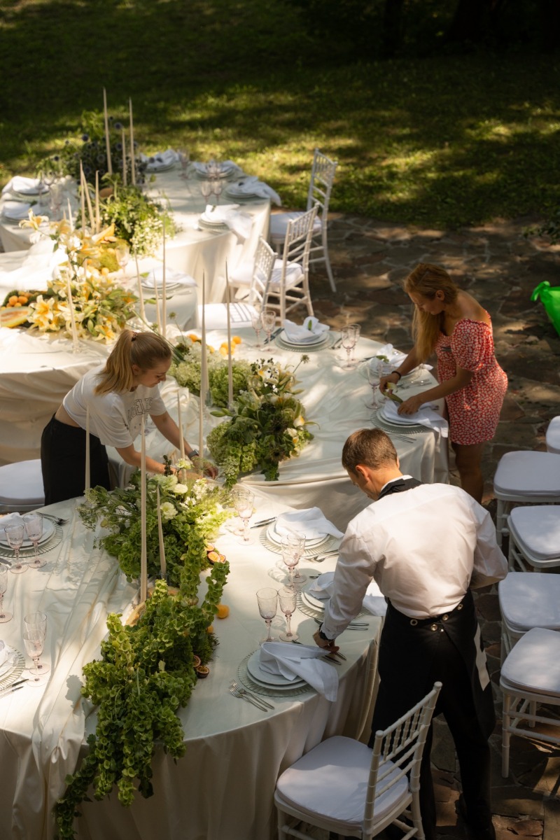 - Флористика: Наш флорист створює композиції, які додають соковитості та свіжого подиху банкетній зоні, підкреслюючи природну красу, обраної Вами локації.