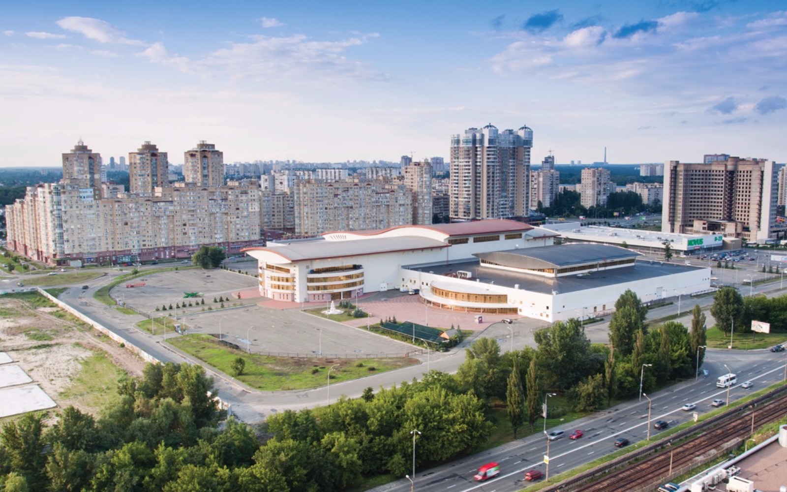 Це найбільша виставкова споруда України – єдиний архітектурний ансамбль з трьох павільйонів загальною площею 58000 кв.м. На базі МВЦ представлений єдиний ліцензійний кейтерінг-підрядник.