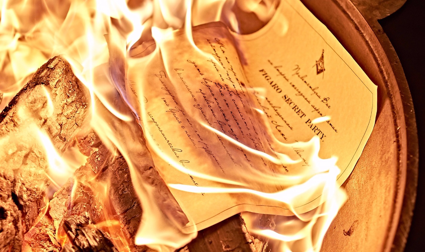 Коли вечір закінчиться, у самого виходу буде стояти велика ваза з вогнем, куди необхідно помістити всі підказки, отримані за вечір. Гості не зможуть покинути масонську ложу, поки не будуть спалені всі підказки.