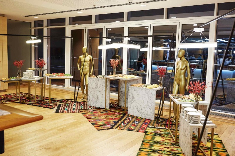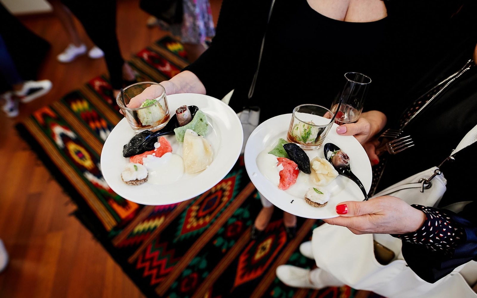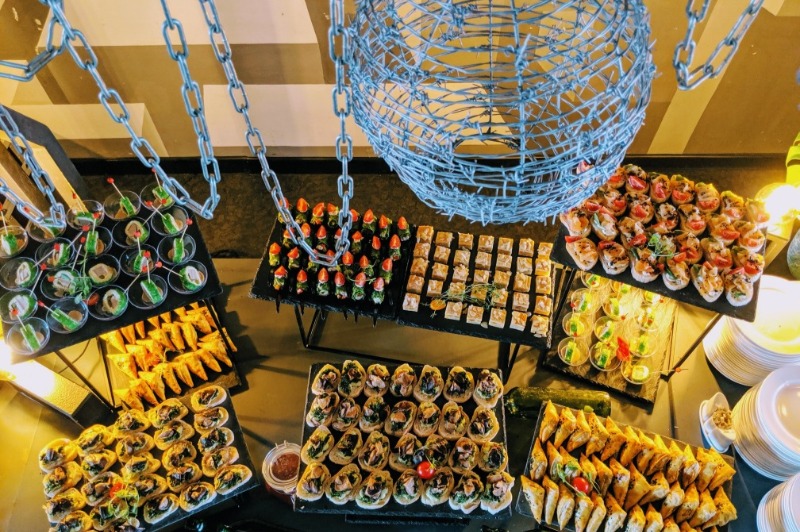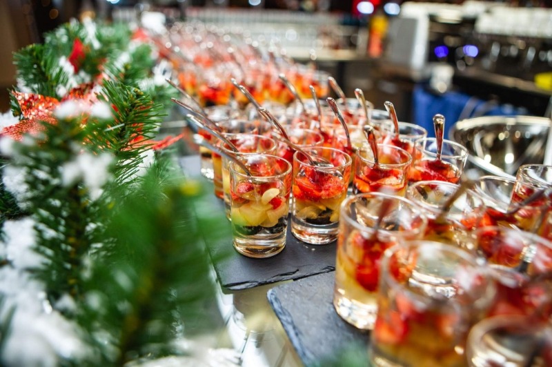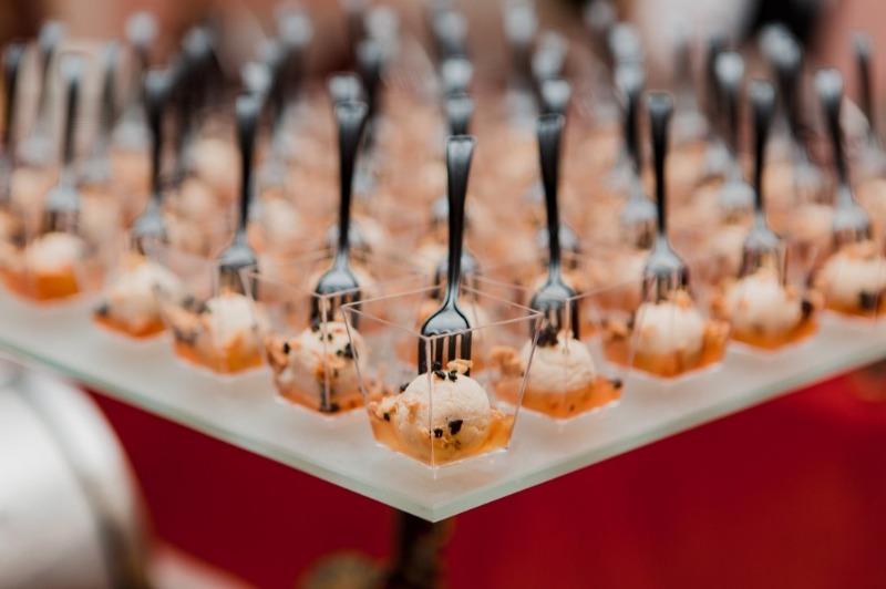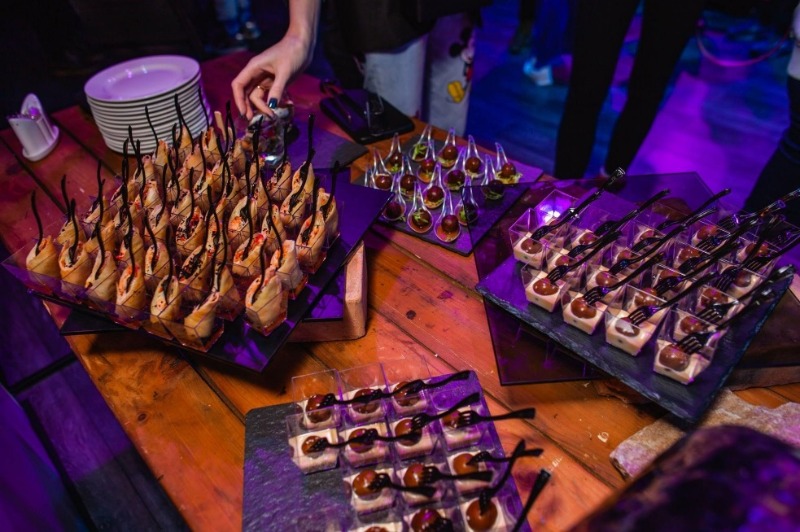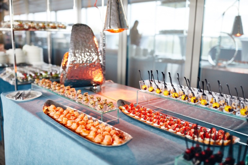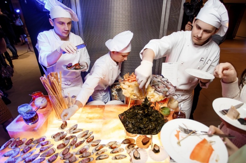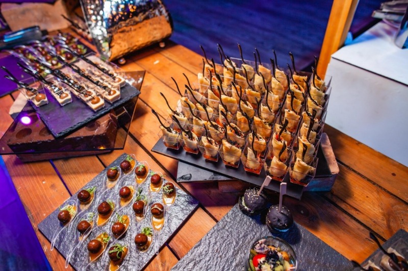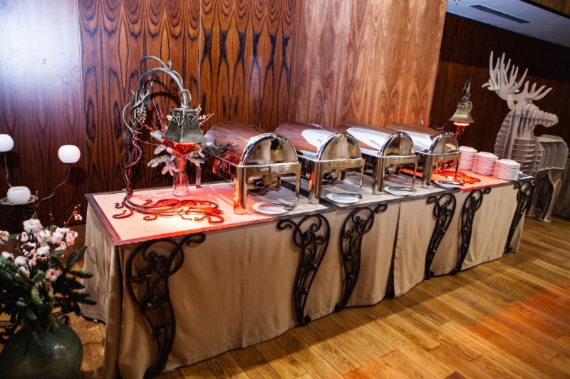 Витончені порційні страви подаються на фуршетних лініях мініатюрними порціями, але в максимальному асортименті. Це дозволяє гостям пригощатися чудовою кухнею за коктейльними столиками, не перериваючи спілкування.