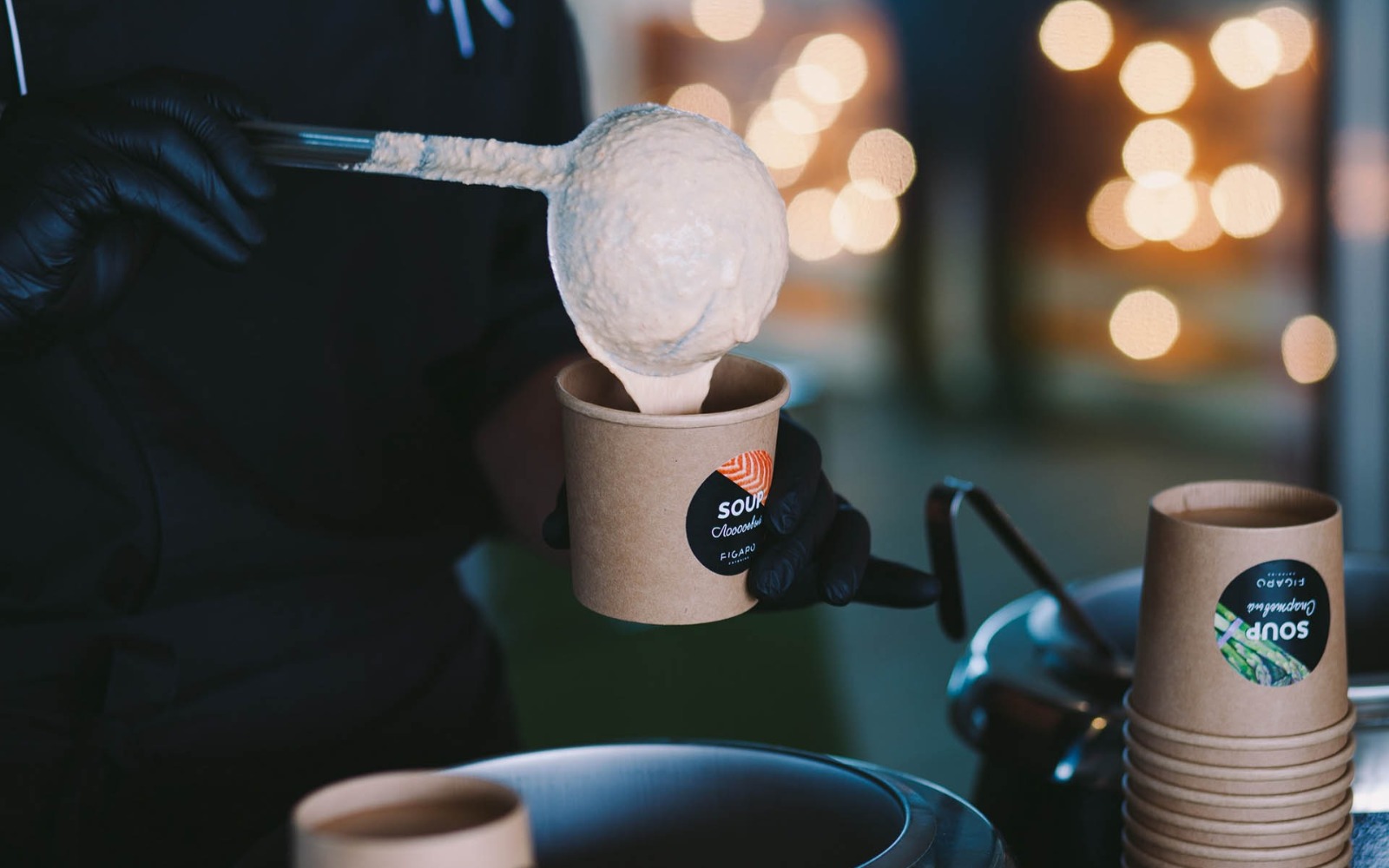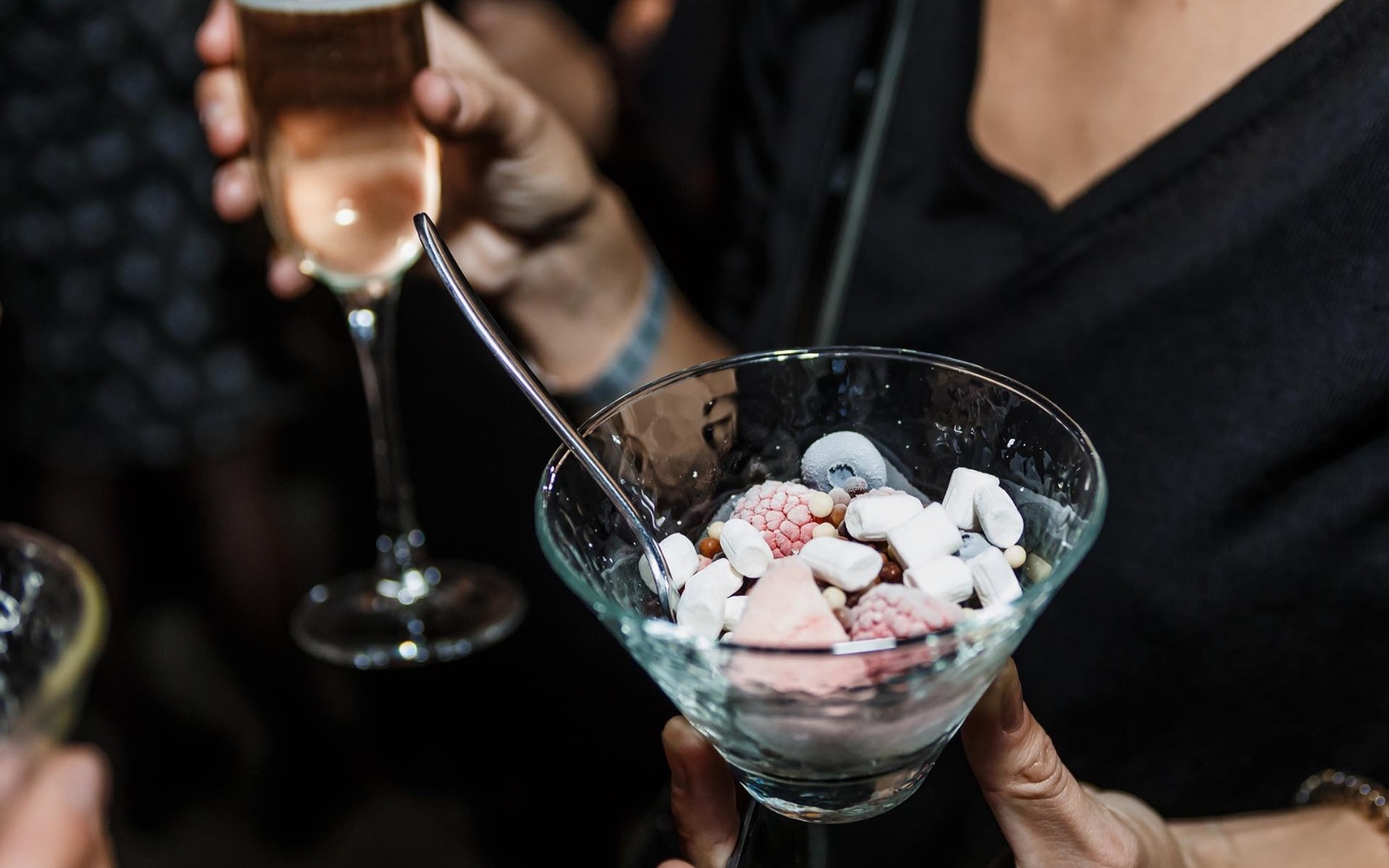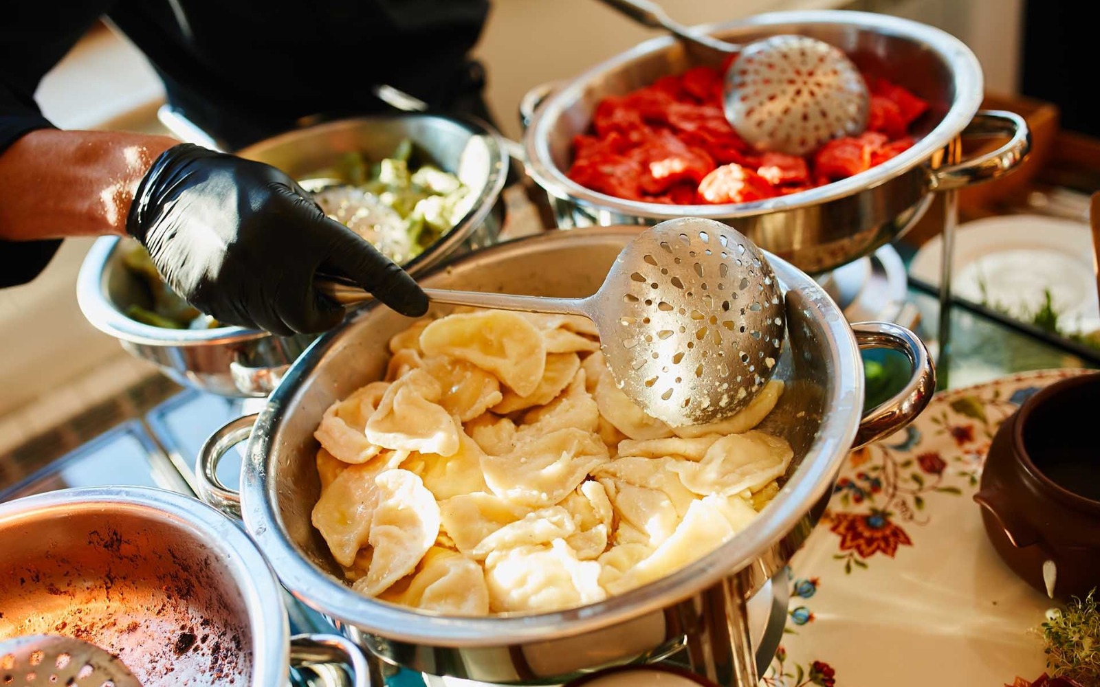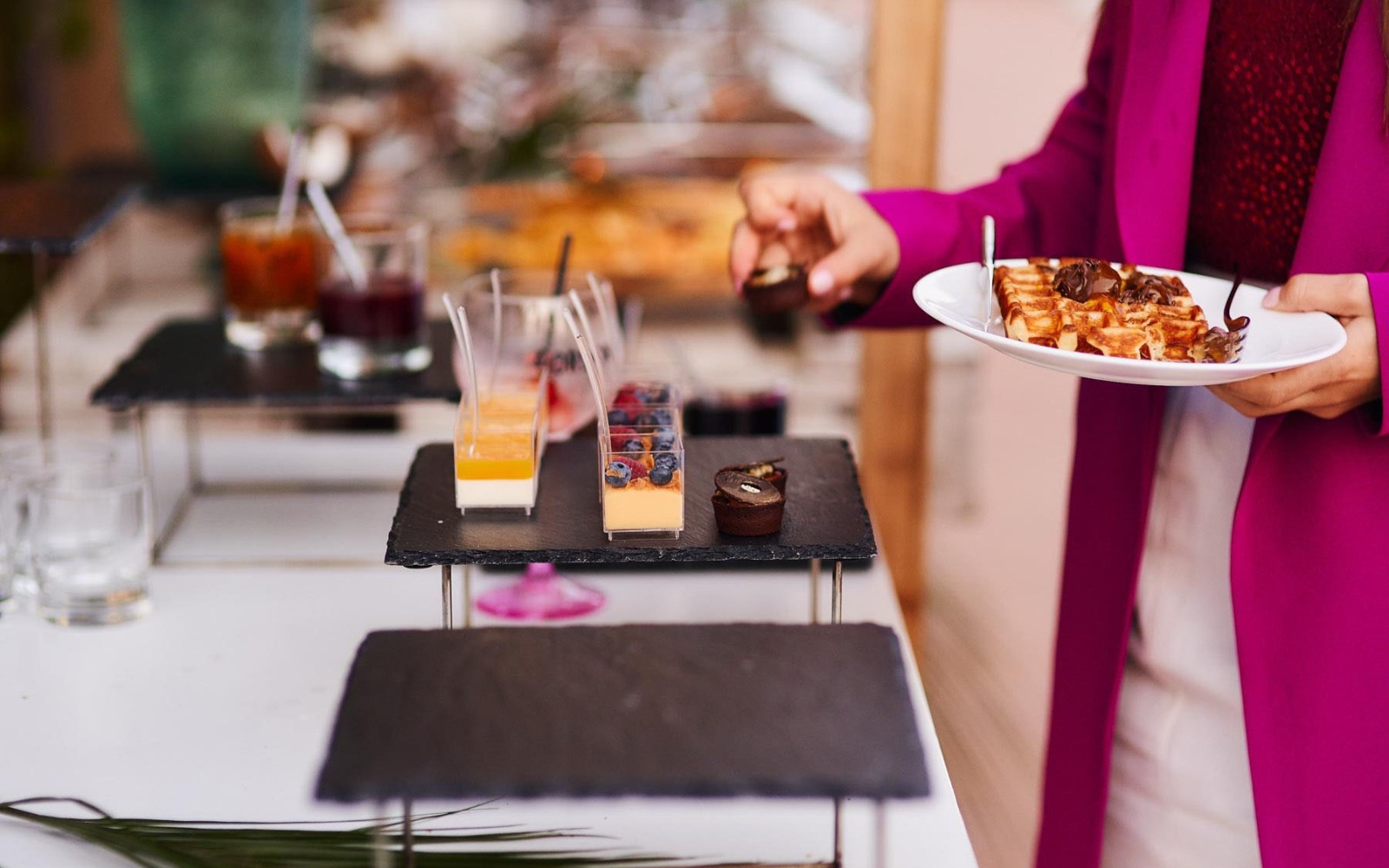 Витончені порційні страви подаються на фуршетних лініях мініатюрними порціями, але в максимальному асортименті. Це дозволяє гостям пригощатися чудовою кухнею за коктейльними столиками, не перериваючи спілкування.