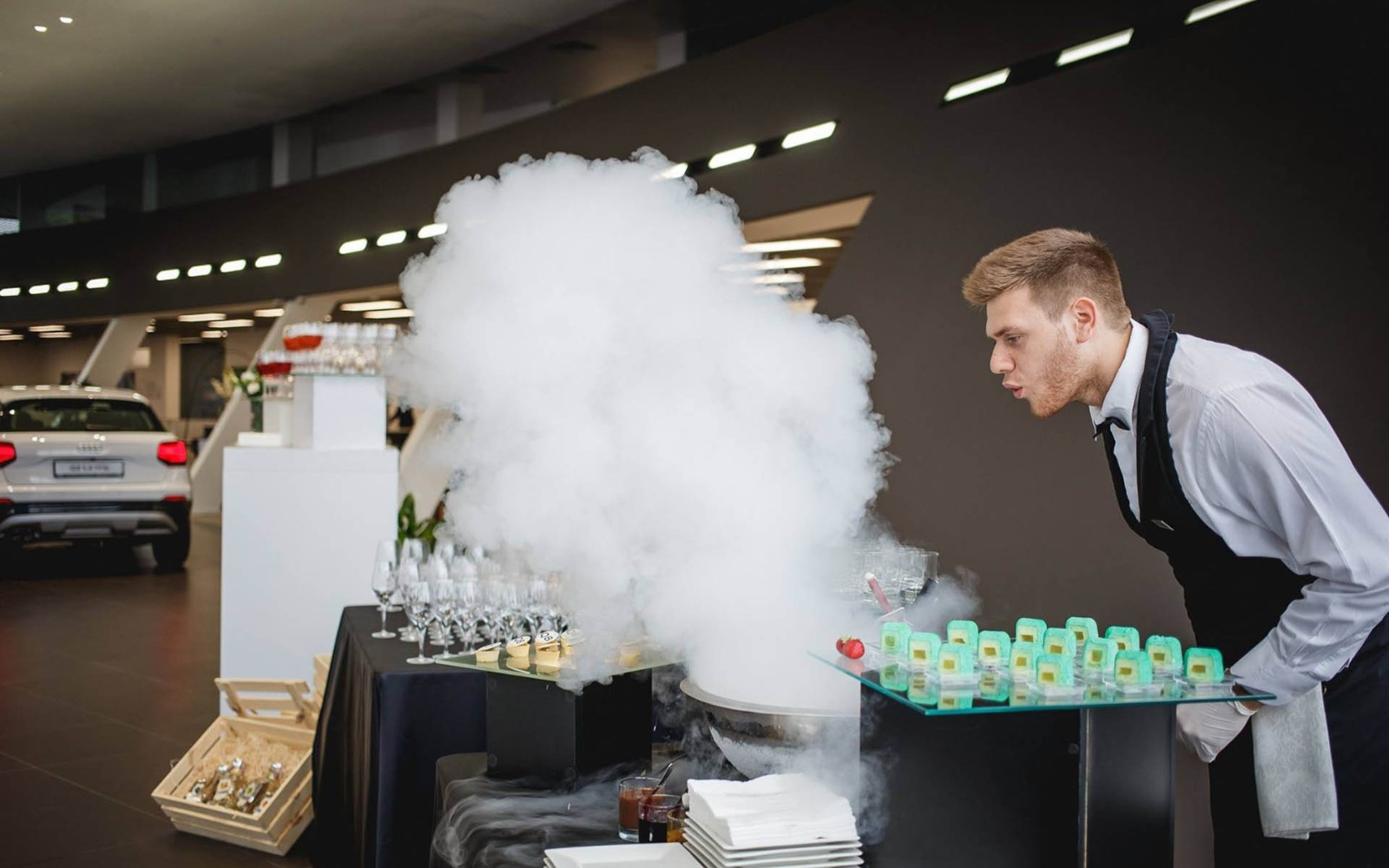 Анімаційні гастрономічні станції можуть доповнити фуршетну лінію і стати родзинкою Вашого заходу. Це гастрономічне шоу з елементами інтерактиву, коли гості спостерігають за процесом приготування, і за бажанням можуть взяти участь в деяких станціях. За анімаційної станцією працює кухар, який, наприклад, нарізає сири або готує морозиво в рідкому азоті, цікаво розповідаючи гостям яким соусом можна доповнити частування. Таким чином, створюється магія смаку та незабутній WOW-ефект.