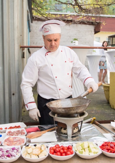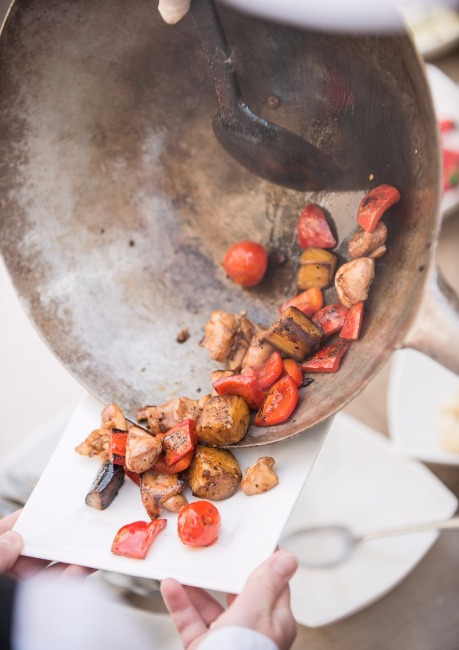 Улюблену страву Прованської кухні кухар готує з палітри свіжих овочів в присутності гостей, і подає з соковитим курячим філе або ніжною свининою, томленою в устричному соусі і горіхами кеш’ю. Це не просто смачне і легке частування, а й захоплююче дійство, коли з вогню – гостям на стіл!